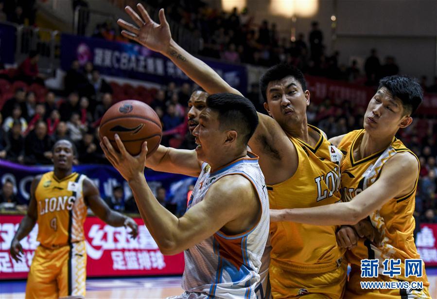 3月28日,新疆广汇汽车队球员李根(中)在比赛中带球突破。 当日,在2018-2019赛季中国男子篮球职业联赛(CBA)季后赛四分之一决赛第二回合比赛中,新疆广汇汽车队主场以139比125战胜浙江广厦控股队。 新华社记者王菲摄