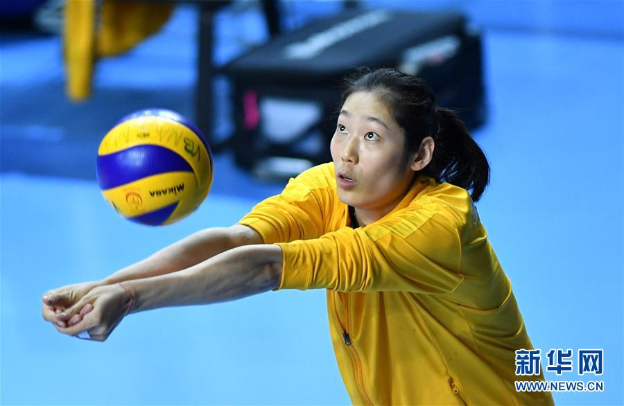 3月28日,瓦基弗银行队球员朱婷在场上热身。 当日,在2018-2019赛季土耳其女排超级联赛四分之一决赛第二回合比赛中,瓦基弗银行队主场以3比0战胜尼吕费尔队,并以主客场皆胜的成绩晋级四强。 新华社记者徐速绘摄