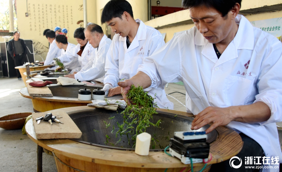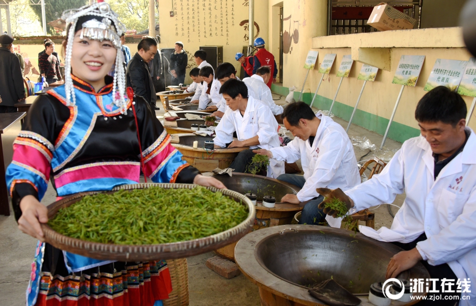 浙江在线3月31日讯(浙江在线拍友 王华斌 摄)3月30日,仙居县安岭乡举行第六届“灵江源杯”斗茶大赛暨春茶开采仪式。安岭乡是仙居县少数民族畲族的居住聚居地,有5000余亩高山优质茶园,每年举行茶生态文化普及、斗茶大赛、原生态民俗技艺展示等系列活动,拓展销售市场,助农民增收增效。