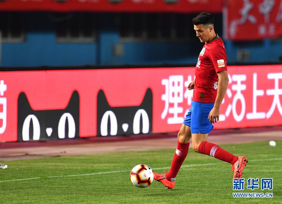 河南建业队球员周定洋在比赛中带球。新华社记者李嘉南摄