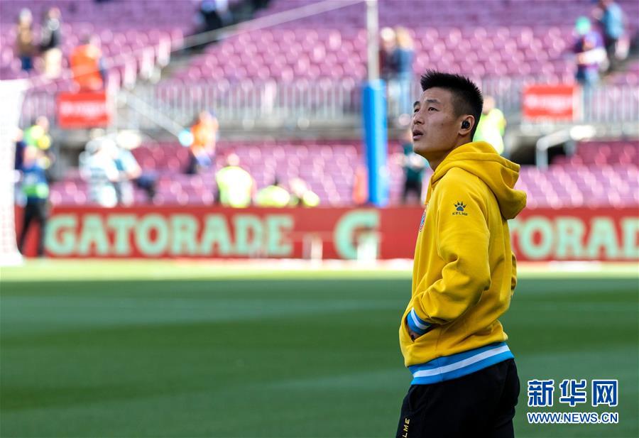 西班牙人队球员武磊在开赛前来到赛场。新华社发