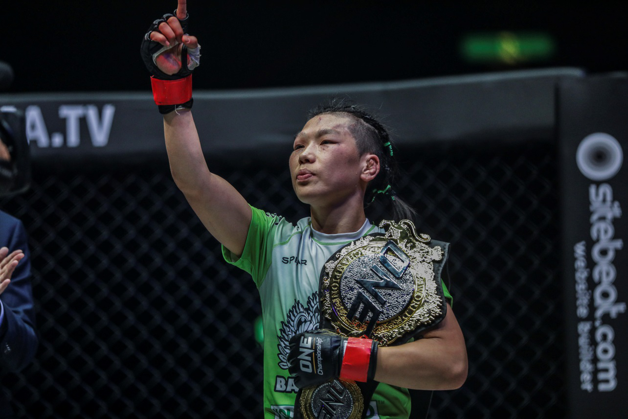新华网体育北京4月1日电 综合格斗赛事ONE冠军赛创新纪元东京站比赛3月31日晚落幕,中国选手熊竞楠在一度十分被动的不利局面下,成功逆转新加坡选手李胜珠,以TKO对手的形式第三次卫冕ONE女子草量级世界金腰带。