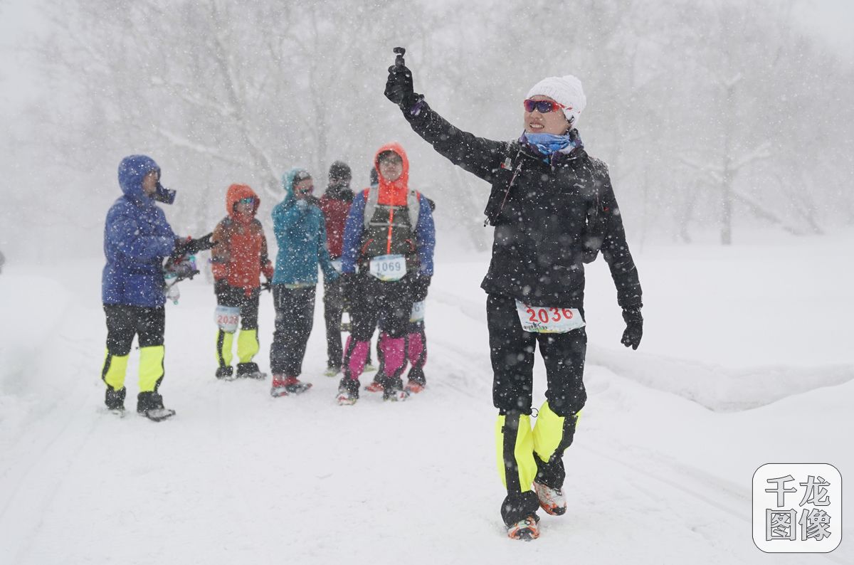4月1日,长白山特色雪地马拉松向天跑活动鸣枪开跑。最终,来自瑞士的Jonas Thuerig(邓瑞翔)获得男子组冠军,成绩为54分38秒。赵宇涵和仲济喜分获男子组亚军和季军。女子组的冠亚季军分别是孙乐美、曾敏和宿诺,最好成绩为1小时8分41秒。图为参赛选手奔跑在林海雪原以“不言放弃”的精神先后冲过终点。千龙网发 首都媒体跑团萧峰摄