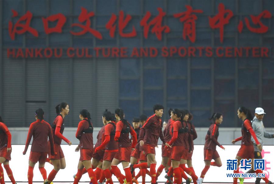 4月2日,中国队球员在训练中。 当日,中国女足在武汉汉口文化体育中心进行训练,备战2019武汉女足四国赛。 新华社记者丁旭摄