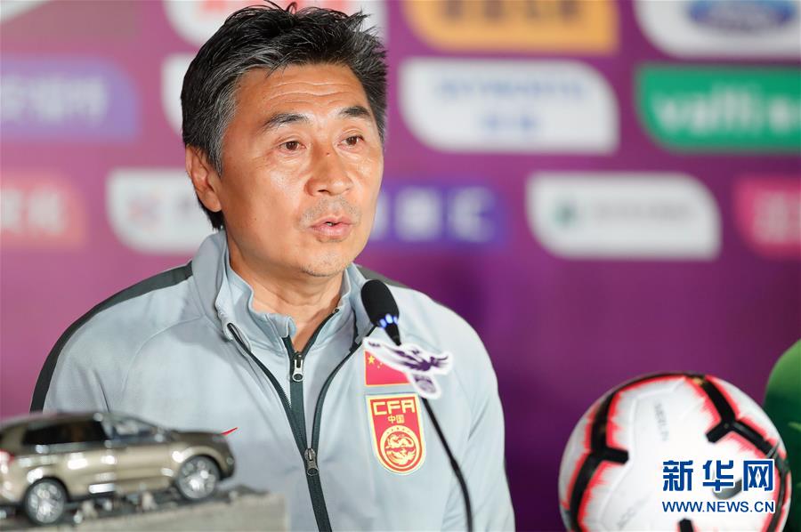 4月3日,中国队主教练贾秀全在新闻发布会上介绍球队备战情况。 当日,2019武汉女足四国赛举行赛前新闻发布会,中国队、克罗地亚队、俄罗斯队和喀麦隆队的主教练参加新闻发布会,介绍球队备战情况。 新华社记者丁旭摄