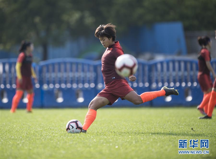 4月3日,中国队球员王霜在训练中。 当日,中国女足在武汉塔子湖体育中心进行训练,备战2019武汉女足四国赛。 新华社记者肖艺九摄