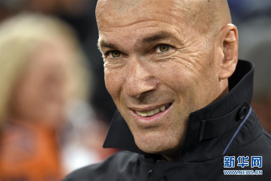 皇家马德里队主教练齐达内在比赛前。新华社/法新社