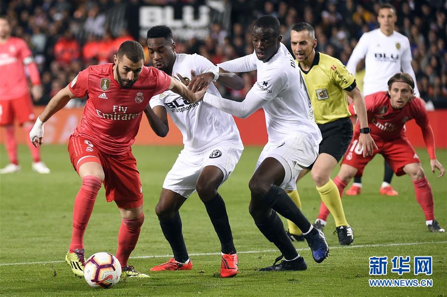 皇家马德里队球员本泽马(左一)在比赛中进攻。新华社/法新社