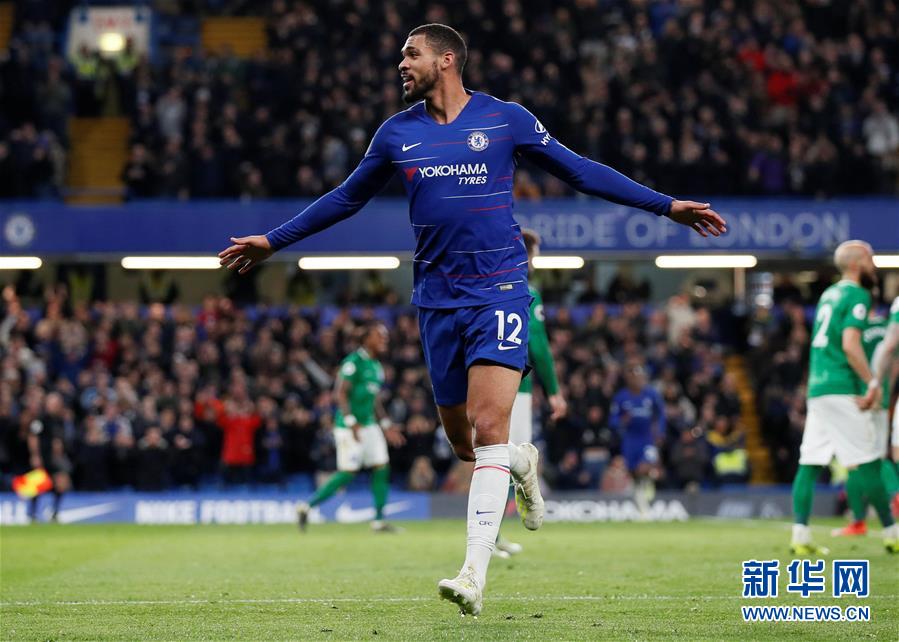 切尔西队球员齐克(前)在比赛中庆祝进球。新华社/路透社