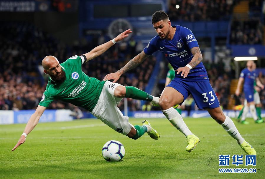 切尔西队球员埃默森(右)与布莱顿队球员布鲁诺在比赛中拼抢。新华社/路透社