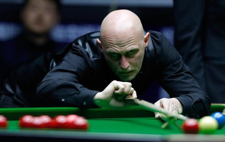 4月3日,梁文博(左)与斯泰德曼(右)在比赛中。 当日,在北京举行的2019年世界斯诺克中国公开赛第二轮比赛中,中国选手梁文博以6比5战胜英格兰选手斯泰德曼,晋级下一轮。 新华社记者王丽莉摄