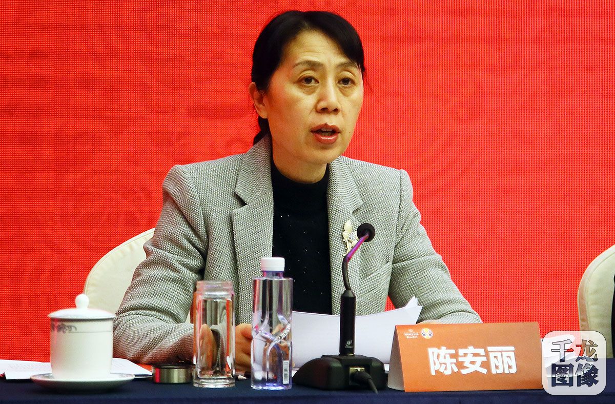 4月4日,2019年国际篮联篮球世界杯组委会第二次全体会议在京召开,组委会主席、国家体育总局局长苟仲文出席会议并讲话。组委会常务执行主席、国家体育总局副局长李颖川作筹备工作报告。图为湖北省副省长陈安丽介绍武汉赛区筹备情况。千龙网记者 戚连民摄