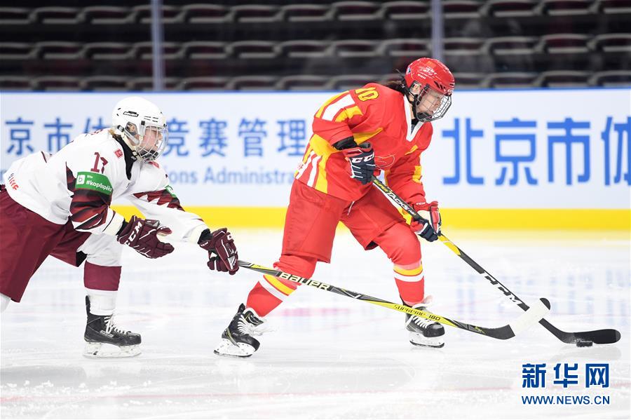 中国队球员何欣(右)在比赛中与拉脱维亚队球员比阿特·札加列拼抢。新华社记者鞠焕宗摄