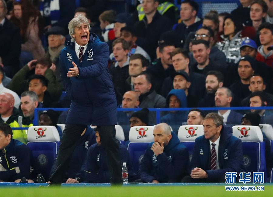 西汉姆联队主教练佩莱格里尼在场边指挥。新华社/路透社