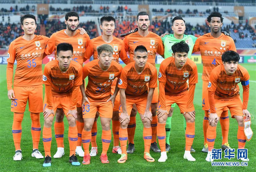 4月9日,山东鲁能队首发球员在赛前合影。 当日,在山东济南举行的2019亚洲足球冠军联赛小组赛E组第三轮比赛中,山东鲁能泰山队主场对阵马来西亚柔佛DT队。 新华社记者朱峥摄