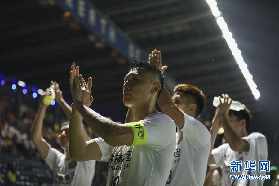 北京中赫国安队球员在赛后向球迷致谢。新华社记者张可任摄