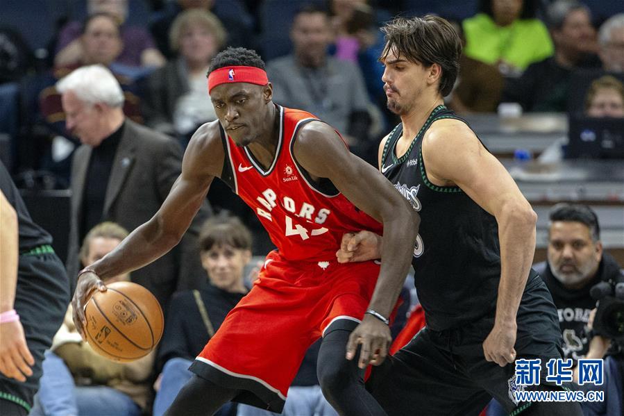 4月9日,猛龙队球员西亚卡姆(左)在比赛中带球进攻。 当日,在2018-2019赛季NBA常规赛中,多伦多猛龙队客场以120比100战胜明尼苏达森林狼队。 新华社/路透社