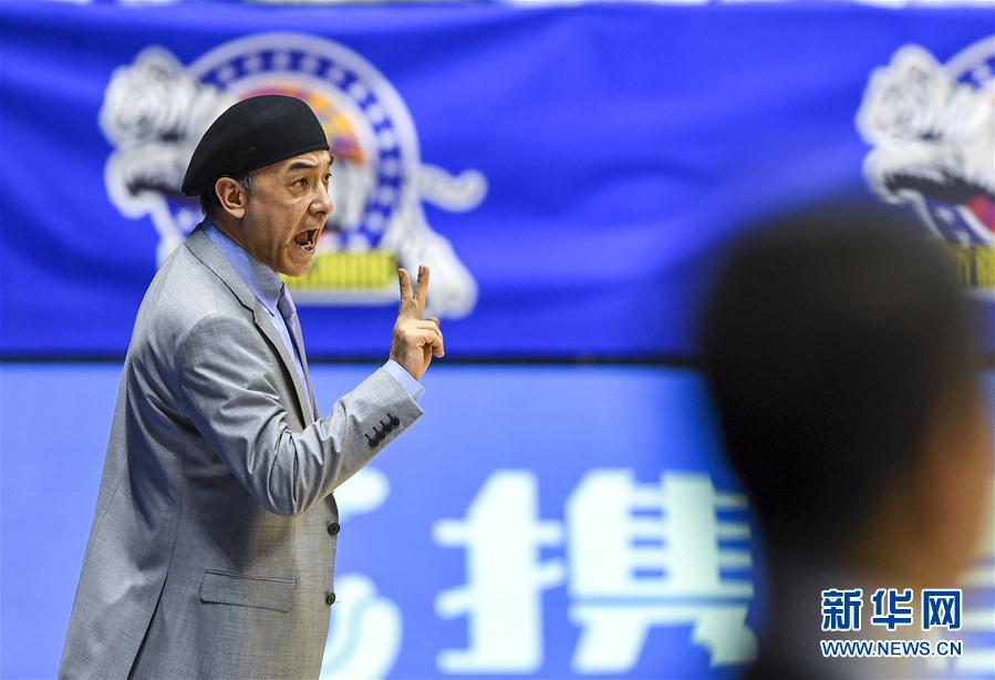 4月16日,新疆广汇汽车队主教练阿的江(左)在场边指挥。 当日,在2018-2019赛季中国男子篮球职业联赛(CBA)半决赛第四回合比赛中,新疆广汇汽车队主场以107比81战胜辽宁本钢队,总比分战成3比1。 新华社记者胡虎虎摄