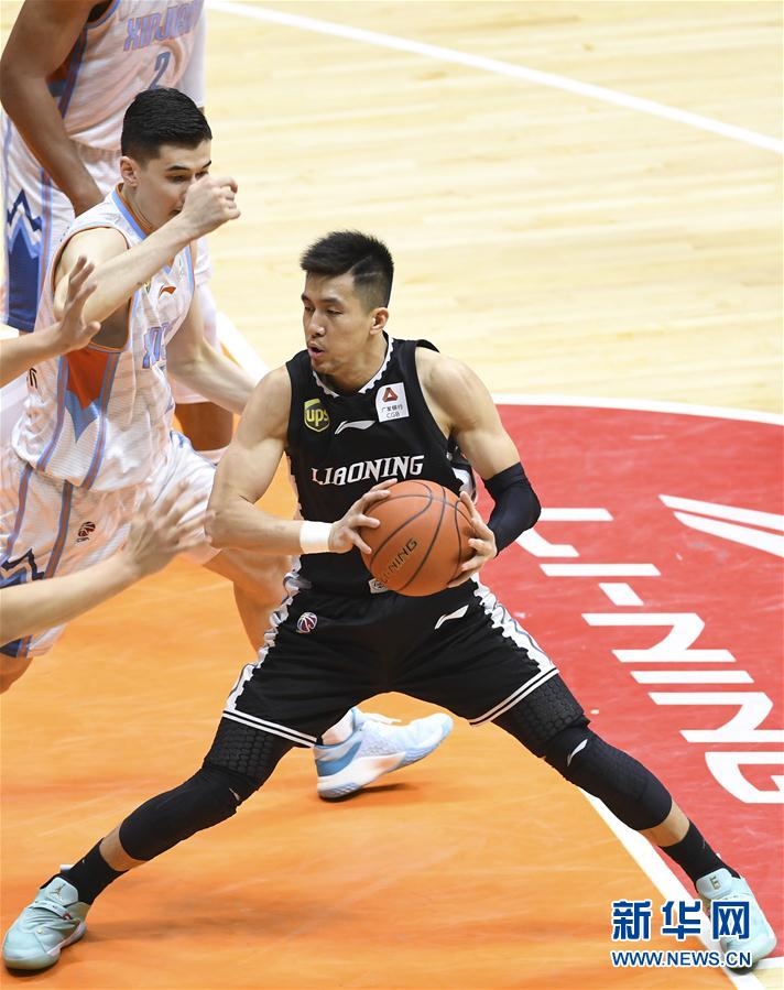 4月16日,辽宁本钢队球员郭艾伦(右)在比赛中进攻。 当日,在2018-2019赛季中国男子篮球职业联赛(CBA)半决赛第四回合比赛中,新疆广汇汽车队主场以107比81战胜辽宁本钢队,总比分战成3比1。 新华社记者胡虎虎摄