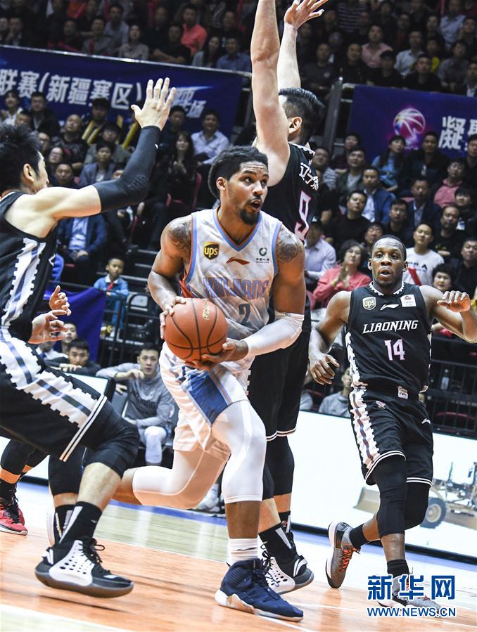 4月16日,新疆广汇汽车队球员斯托克斯(中)在比赛中带球突破。 当日,在2018-2019赛季中国男子篮球职业联赛(CBA)半决赛第四回合比赛中,新疆广汇汽车队主场以107比81战胜辽宁本钢队,总比分战成3比1。 新华社记者王菲摄