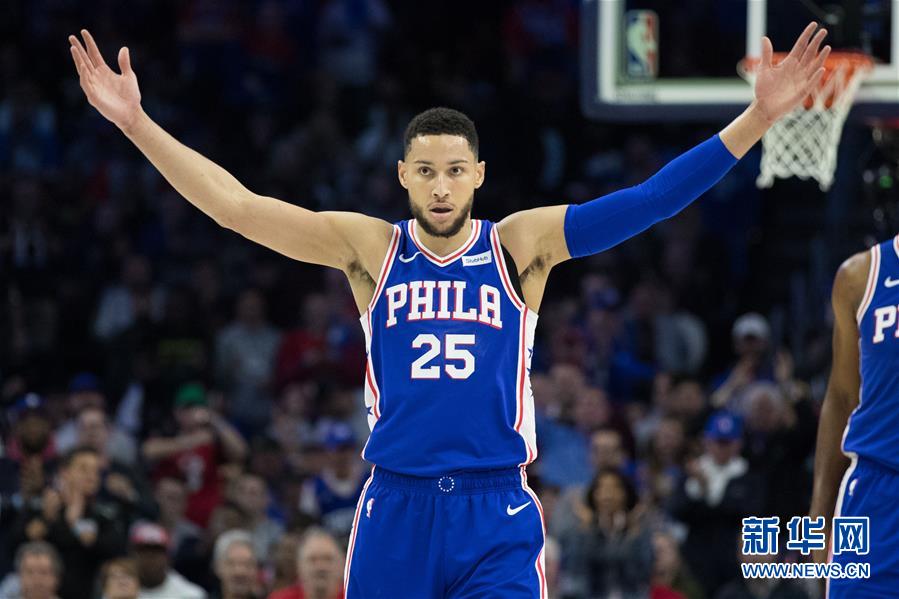 4月15日,76人队球员西蒙斯在比赛中庆祝得分。 当日,在2018-2019赛季NBA季后赛东部首轮第二场比赛中,费城76人队主场以145比123战胜布鲁克林篮网队,双方战成1比1平。 新华社/路透社