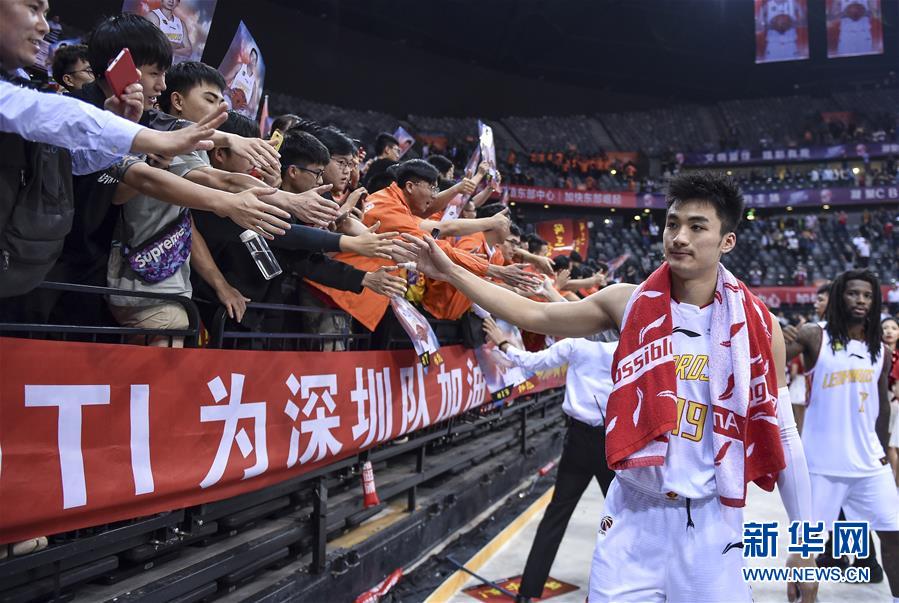 深圳马可波罗队球员于德豪赛后向球迷致意。新华社记者毛思倩摄