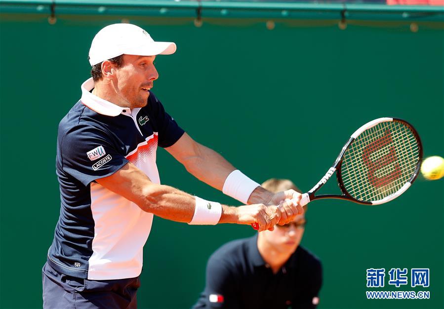 4月17日,阿古特在比赛中回球。当日,在2019ATP蒙特卡洛大师赛单打第二轮比赛中,西班牙选手纳达尔以2比0战胜同胞阿古特,晋级下一轮。 新华社发(尼古拉·马里摄)