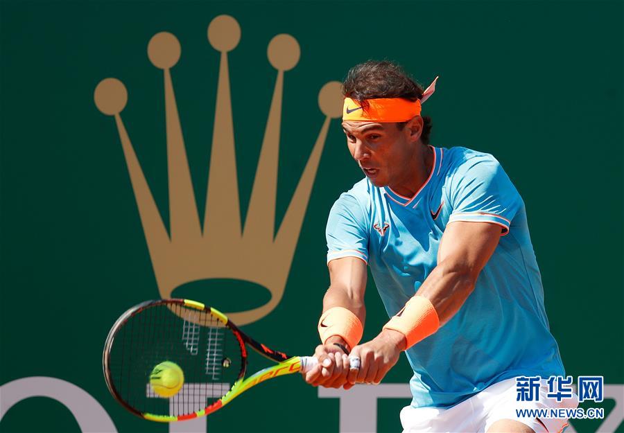 4月17日,纳达尔在比赛中回球。当日,在2019ATP蒙特卡洛大师赛单打第二轮比赛中,西班牙选手纳达尔以2比0战胜同胞阿古特,晋级下一轮。 新华社发(尼古拉·马里摄)
