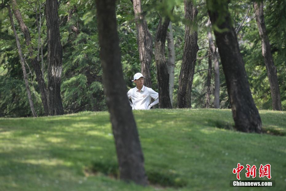 4月18日,2019汇丰中国青少年高尔夫冠军赛郑州站开赛,共有117名男女青少年选手参与本站赛事角逐。图为选手白振宇在比赛中。中新社记者 崔楠 摄