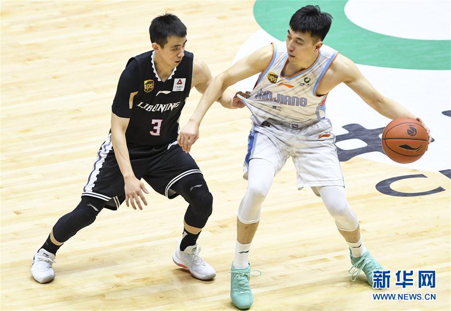 4月18日,新疆广汇汽车队球员曾令旭(右)持球突破辽宁本钢队球员赵继伟的防守。 当日,在2018-2019赛季中国男子篮球职业联赛(CBA)季后赛半决赛第五回合比赛中,新疆广汇汽车队主场以99比62战胜辽宁本钢队,从而以总比分4比1晋级决赛。 新华社记者胡虎虎摄