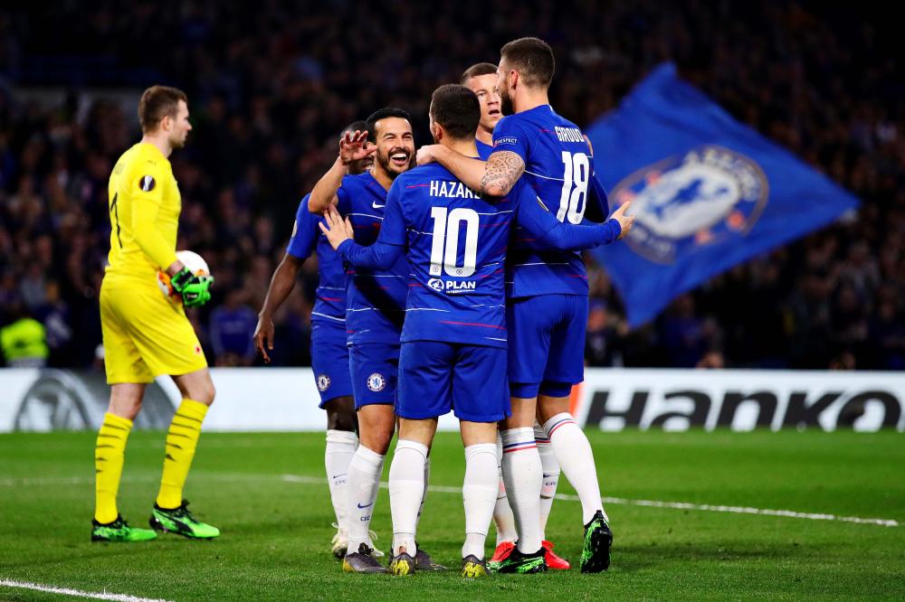 央视网消息:北京时间4月19日03:00(英国当地时间18日20:00),2018/19赛季欧联杯1/4决赛次回合一场焦点战在斯坦福桥球场展开争夺,切尔西主场4比3力克布拉格斯拉维亚,佩德罗梅开二度,并制造德利乌龙,还助攻吉鲁得分。切尔西总比分5-3晋级。