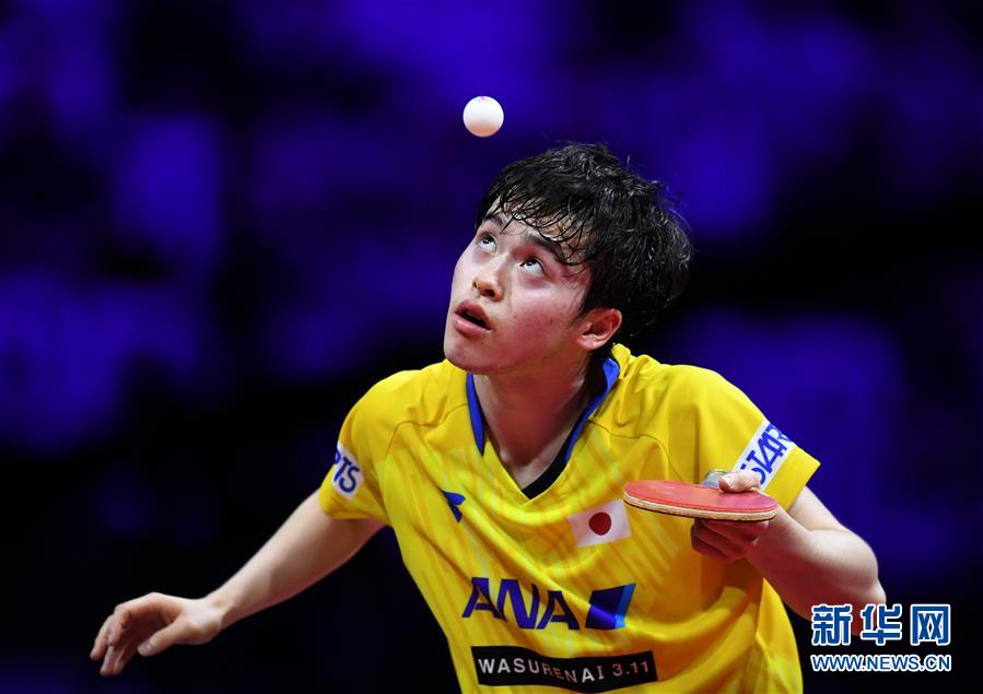 4月24日,森园政崇在比赛中发球。 当日,在匈牙利布达佩斯进行的2019世界乒乓球锦标赛男子单打第三轮比赛中,德国选手波尔以4比0战胜日本选手森园政崇,晋级16强。 新华社记者逯阳摄