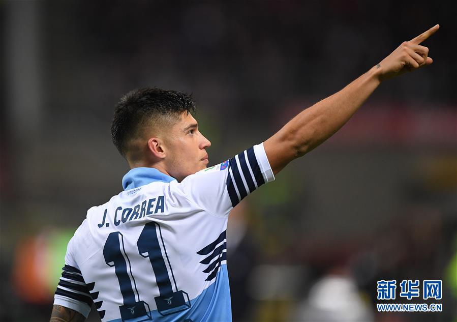4月24日,拉齐奥队球员科雷亚进球后庆祝。 当日,在2018-2019赛季意大利杯足球赛半决赛次回合的比赛中,拉齐奥队客场以1比0战胜AC米兰队,并以1比0的总比分晋级决赛。 新华社发(阿尔贝托·林格里亚摄)