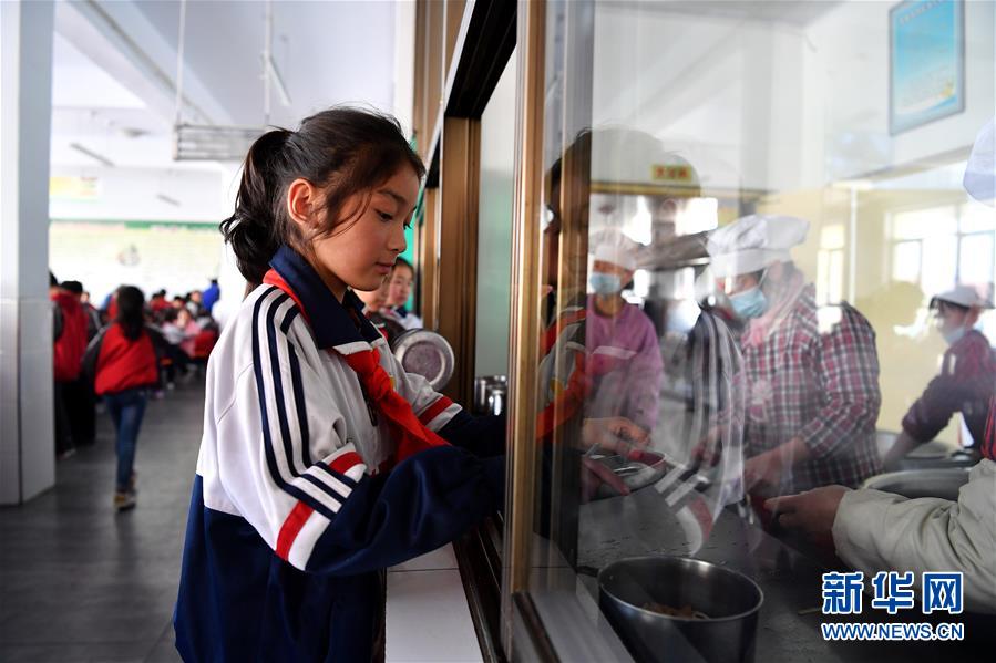 这是学生们在食堂排队打饭(4月16日摄)。 新华社记者詹彦摄
