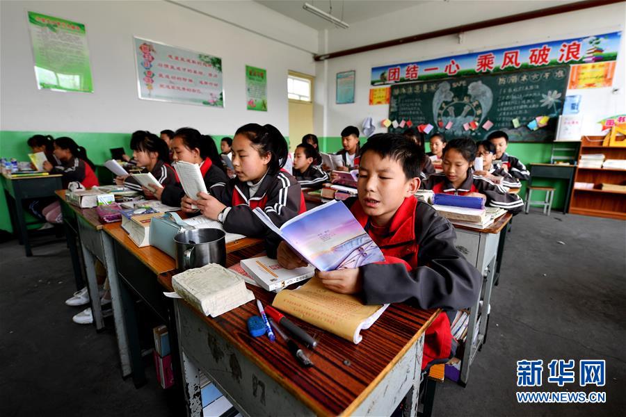这是初一121班的学生们在课堂上朗读课文(4月18日摄)。 新华社记者詹彦摄