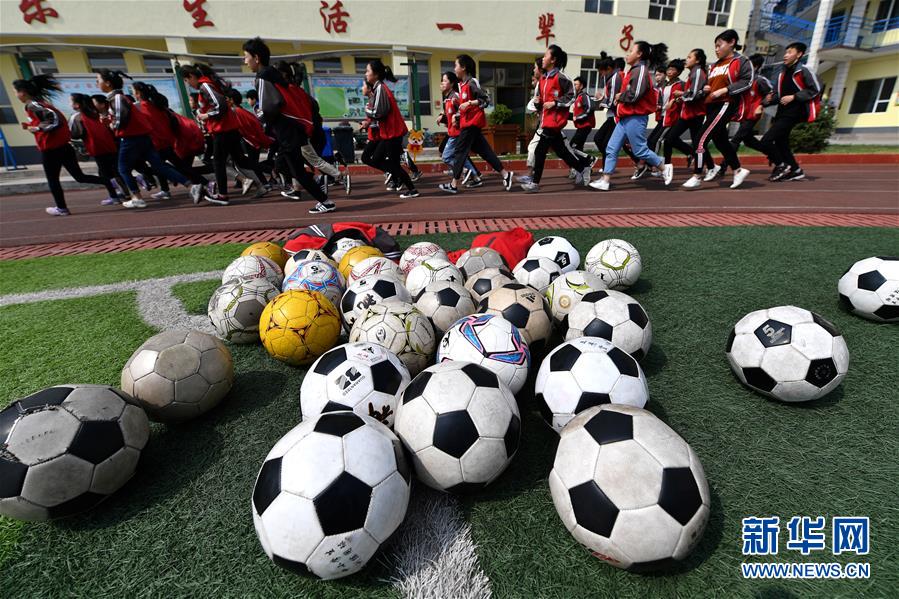 这是学生们在跑步进行体能训练(4月18日摄)。 新华社记者詹彦摄