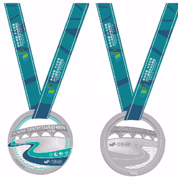四川武胜地处嘉陵江中游,有“嘉陵明珠”之称。2019武胜乡村马拉松的奖牌以嘉陵江大桥、山水为主要元素,赛事LOGO经过设计变幻化身为潺潺流动的河流,形状酷似武胜拼音首字母“W”。嘉陵江大桥与梯田元素巧妙结合,融合武胜城市特色的同时凸显了“诗画田园”的赛事主题。透明的亚克力圆环工艺更从细微处展现武胜乡村马拉松赛奖牌的精美。