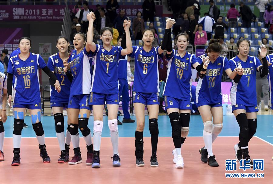 4月29日,天津女排球员在赛后向观众致意。 当日,在天津武清体育中心举行的2019亚洲女排俱乐部锦标赛A组小组赛中,天津女排以3比0战胜中国台北女排。 新华社记者岳月伟摄