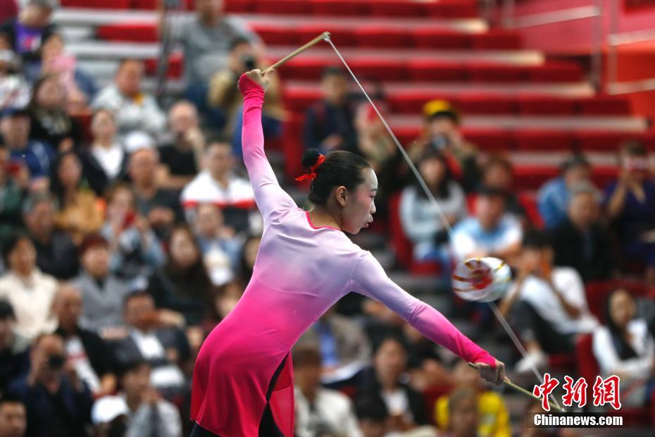 5月5日,“温故知心·铸魂逐梦”北京演艺集团成立十周年系列活动之中国杂技团公众开放日举行。活动旨在宣传杂技艺术、展现非遗文化,提高观众对优秀传统文化的认知度和参与度。图为杂技团演员向观众展示抖空竹。中新社记者 富田 摄