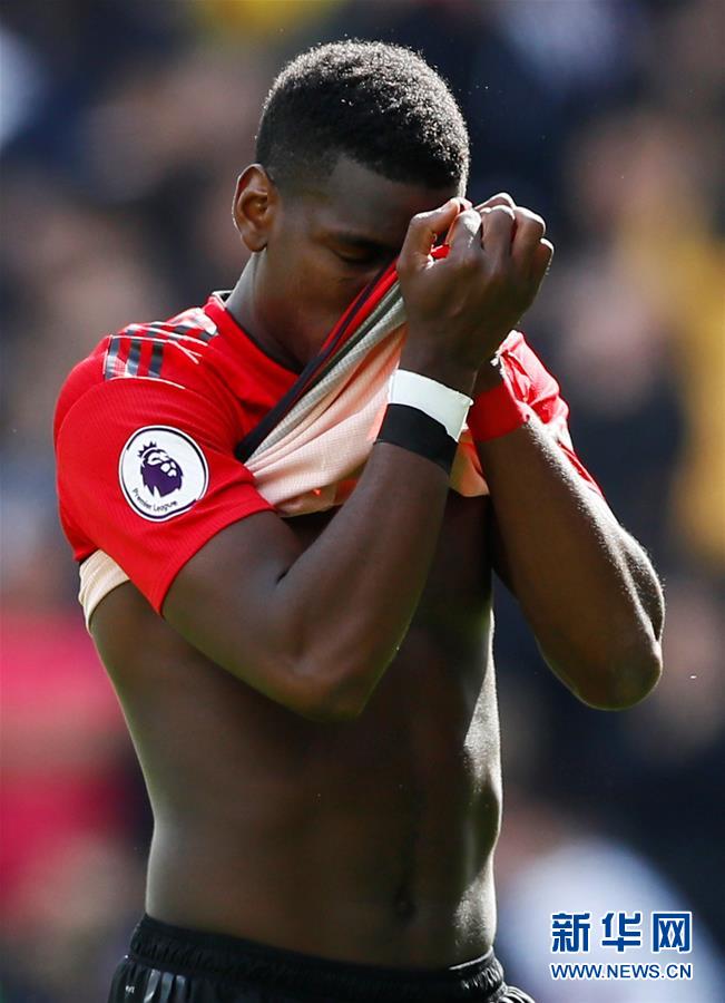 5月5日,曼联队球员博格巴在比赛后。 当日,在2018-2019赛季英格兰足球超级联赛第37轮比赛中,哈德斯菲尔德队主场以1比1战平曼联队。 新华社/路透