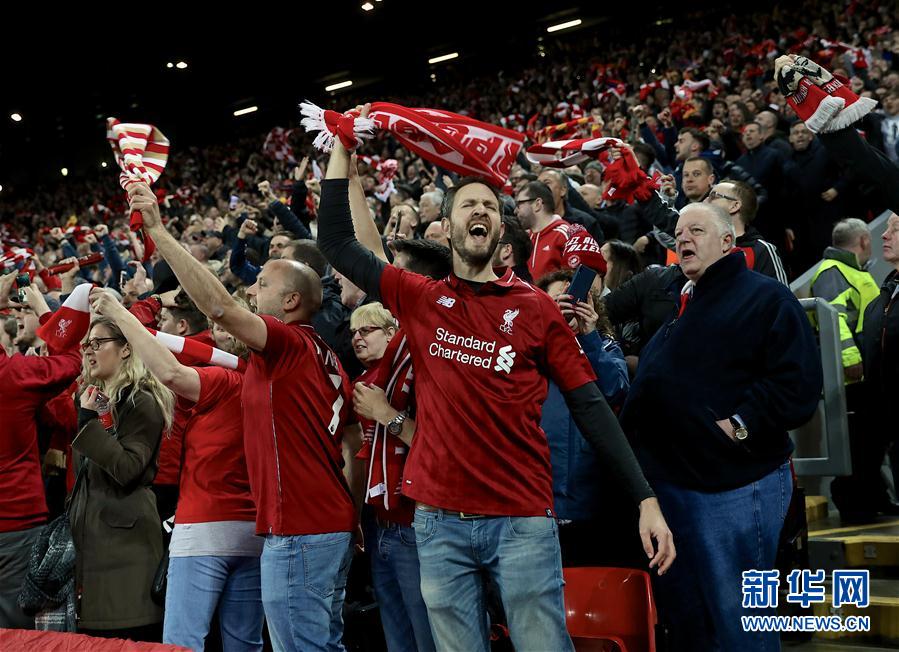 5月7日,利物浦队球迷在赛后庆祝。 当日,在英国利物浦安菲尔德球场进行的2018-2019赛季欧洲足球冠军联赛半决赛第二回合比赛中,英超利物浦队主场以4比0战胜西甲巴塞罗那队,从而以两回合4比3的总比分上演奇迹逆转,晋级决赛。 新华社发