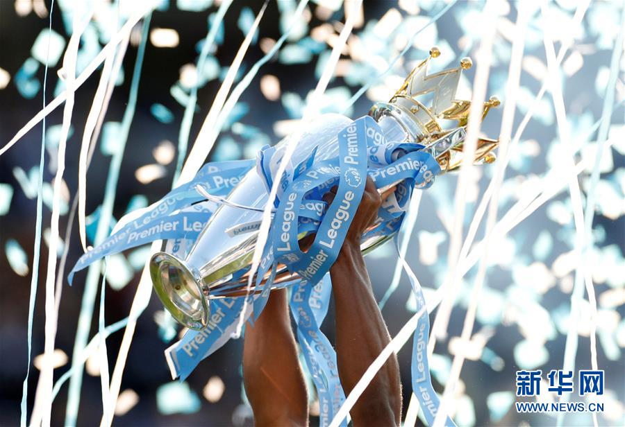 曼城队球员在颁奖仪式上高举冠军奖杯。 新华社/路透