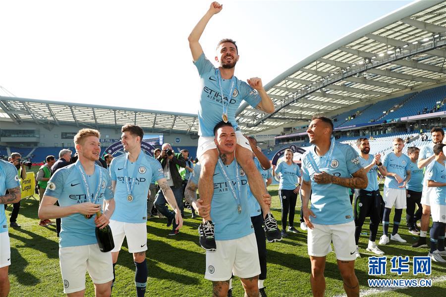 曼城队球员在颁奖仪式后庆祝。 新华社/路透