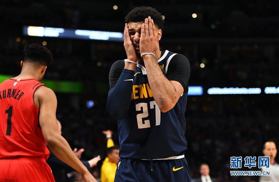 ,掘金队球员贾马尔·穆雷(右)在比赛中。新华社/路透