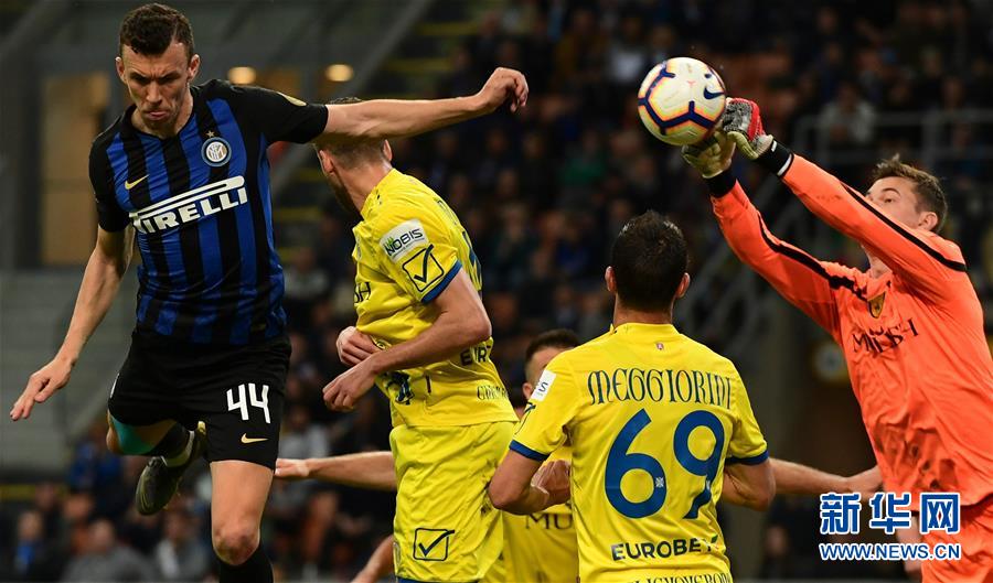 切沃队门将森佩尔(右一)在比赛中扑救。 新华社/法新