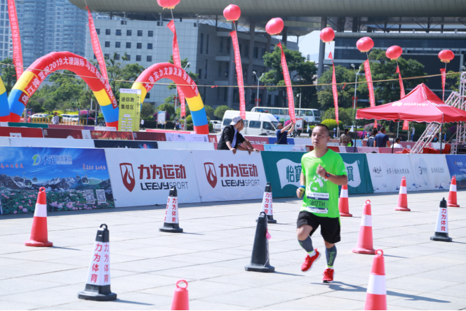 5月19日,来自云南曲靖的申加升在男子半程比赛中冲线。(肖发兴摄)