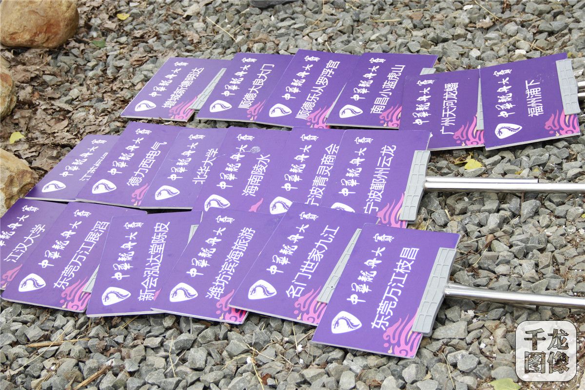 5月19日,2019中华龙舟大赛江苏盐城站落幕。图为各队的标志牌。千龙网记者 袁帅摄