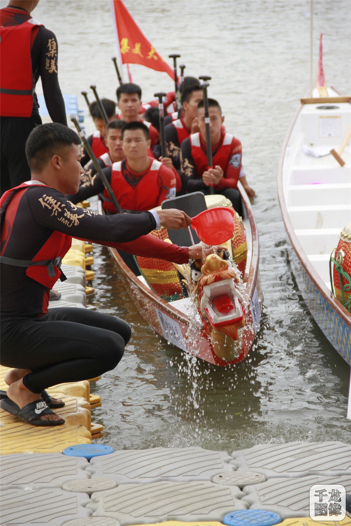 5月19日,2019中华龙舟大赛江苏盐城站落幕。图为运动员为龙头冲洗。千龙网记者 袁帅摄