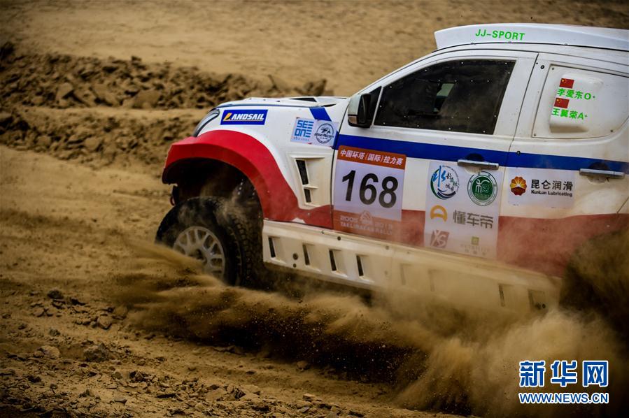 5月20日,迁安九江·路航轮胎车队车手李爱东、领航员王翼荣驾驶赛车在赛道疾驰。 当日,2019年环塔拉力赛超级短道排位赛开始,赛段全长约58.5公里。今天的比赛成绩决定着明日比赛的发车顺序。 新华社记者江文耀摄