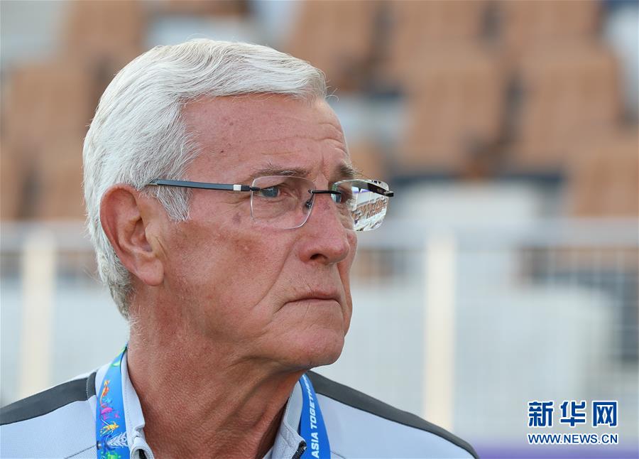 这是2019年1月7日,中国队主教练里皮在阿联酋艾因举行的2019年亚洲杯足球赛C组小组赛中国队对阵吉尔吉斯斯坦队比赛前。